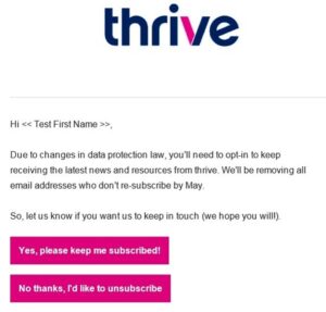 Now we have about half of our list GDPR compliant, and we’re sending out re-consent options to these people in each of our monthly newsletters.